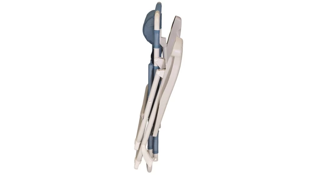 This is the ultimate beach chair luxury with seven reclining positions, a neck pillow, and armrests.