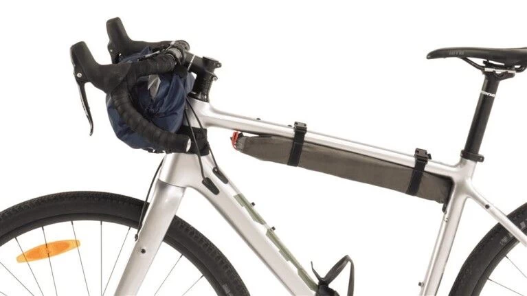 The tent is quickly packed into waterproof bags in the morning with buckles to strap securely on your bike frame or rack.