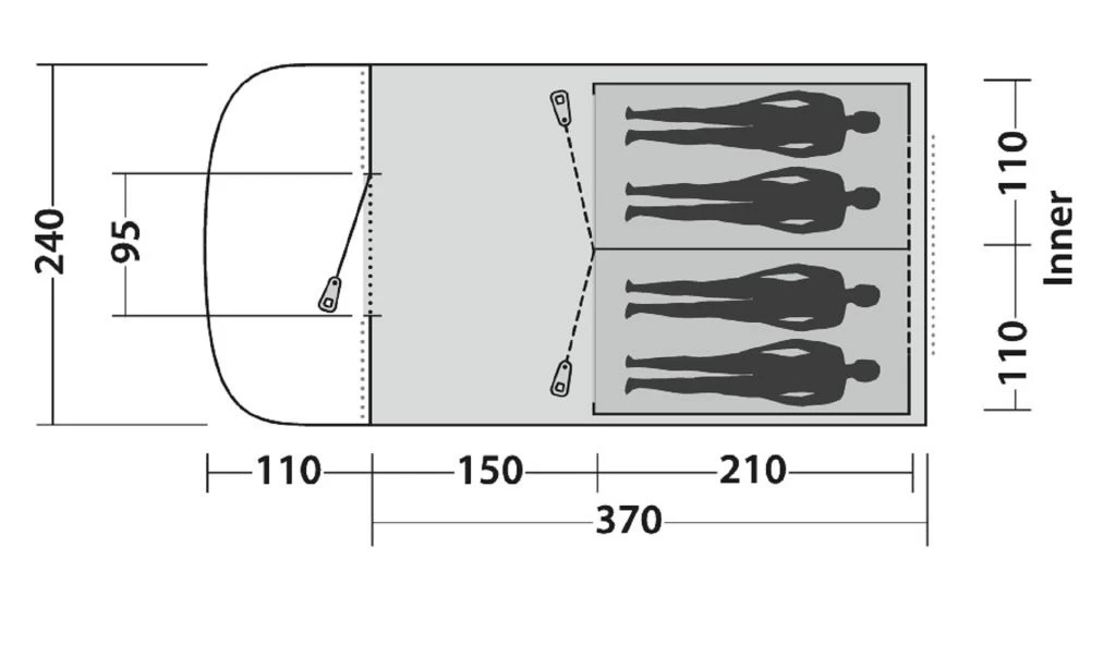 - Family tunnel tent with great living area and front rain-safe entrance
