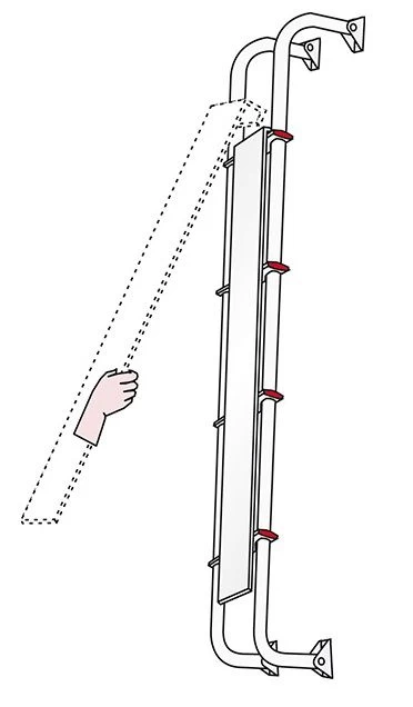 An anti-theft safety plate suitable for both single and double step ladders. Standard delivered with lock and keys.