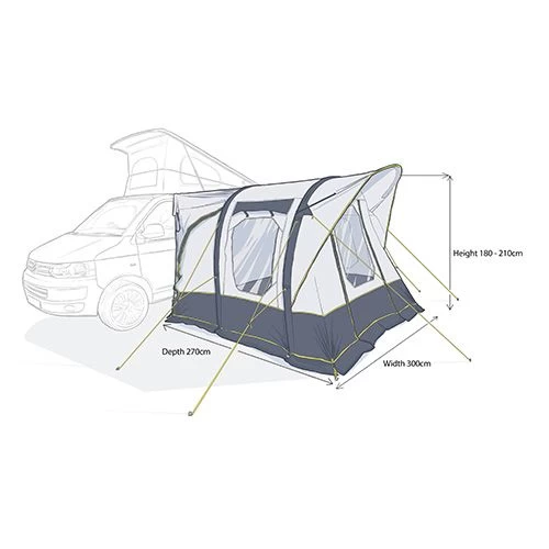 The Maypole Clent Air Driveaway Awning is suitable for campervans with an awning channel height of 180 cm-210 cm. Easy to inflate with the multi-point inflation system using the pump provided.