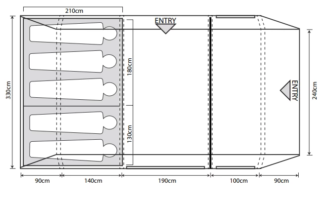 - Darkened Twilight micro polyester 6-person bedrooms with 2/2/2 divider
