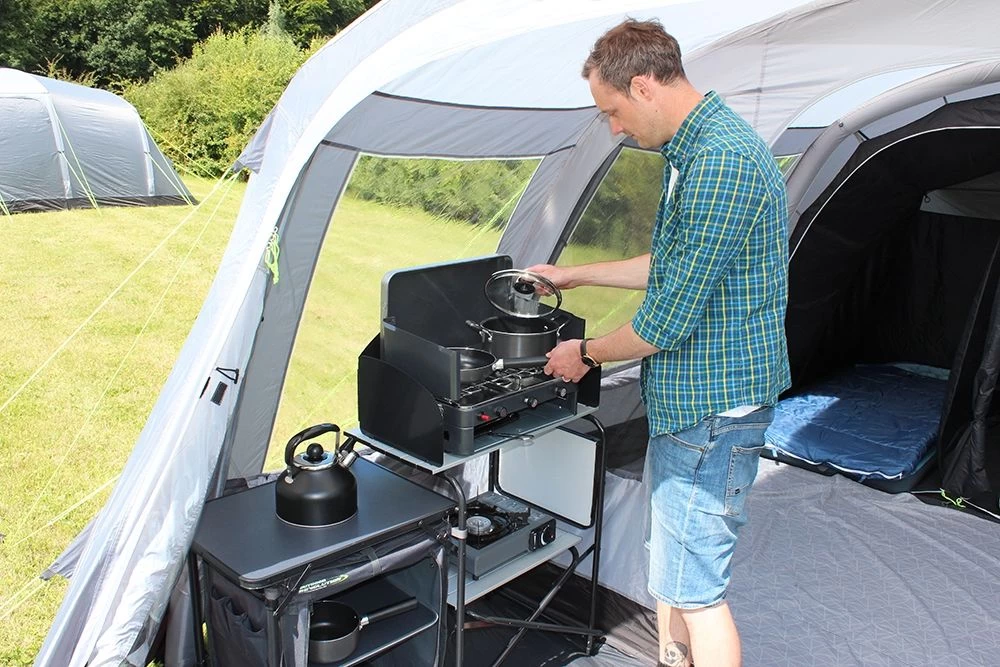 The internal design offers the perfect allocation of usable space for families, split between a generous commune area, a darkened ‘Twilight’ fabric Five-person bedroom that can be split down to a 2/3 Configuration using the toggle-in divider, and a spacious enclosed front porch area. Outdoor Revolution’s vortex bedroom ventilation system and ample mesh fly screen panels combined with crystal-clear window panels maintain an airy internal space and maximise airflow in warmer temperatures.