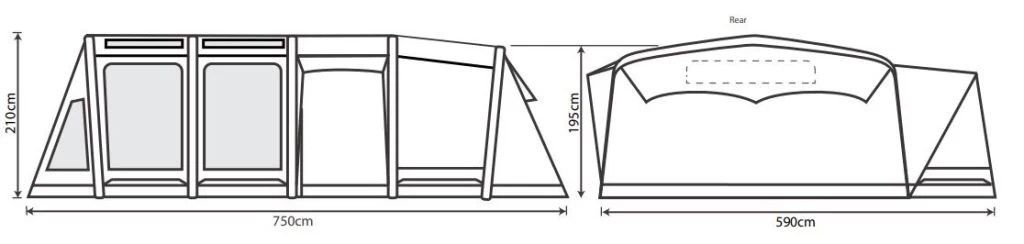 - Seven Berth Inner Tent – A Darkened ‘Twilight’ Breathable Clip-In Micro-Polyester Inner Tent, Which Has Been Designed to Accommodate Up to Seven Average Adults. This Can Be Separated Into Three Bedrooms (2 x 3 x 2), Using the Inclusive Dividers, Each of Which Can Comfortably House a Double Air Mattress