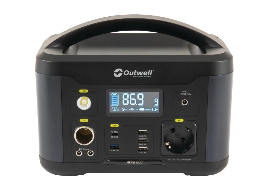 You’ll enjoy reliable portable power at your fingertips with the Outwell Akira 600 Power Station which can be recharged on the road from your vehicle battery.