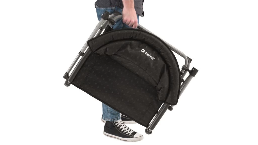 A wide seat and padding for your back plus foam padded arms add up to light, reliable comfort. When it’s time for you to move on, its flat packed size makes it easy to carry and stow away efficiently.