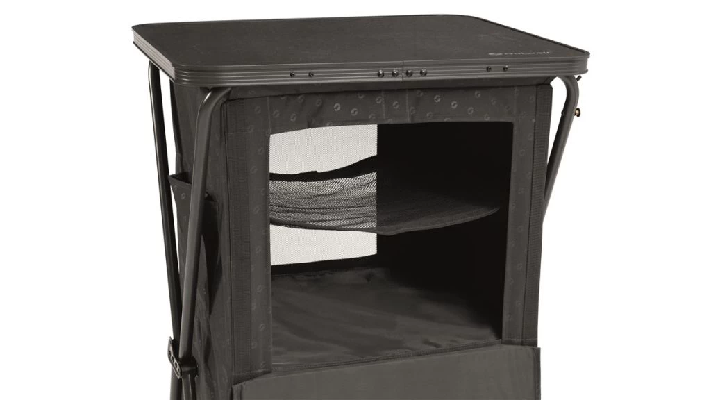 This stylish cabinet is brand new from Outwell for 2021. it comes in a stylish grey fabric with easy to access flip down down doors and 2 shelves.