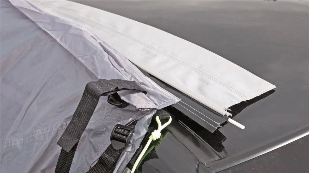 Fantastic design from Outwell allows you to use magnets to connect your awning / touring tent to your vehicle. Some high roofed vehicles and van conversions are fibre-glass or aluminium. Please check the area you wish to secure the magnetic strip to with a magnet before purchasing.