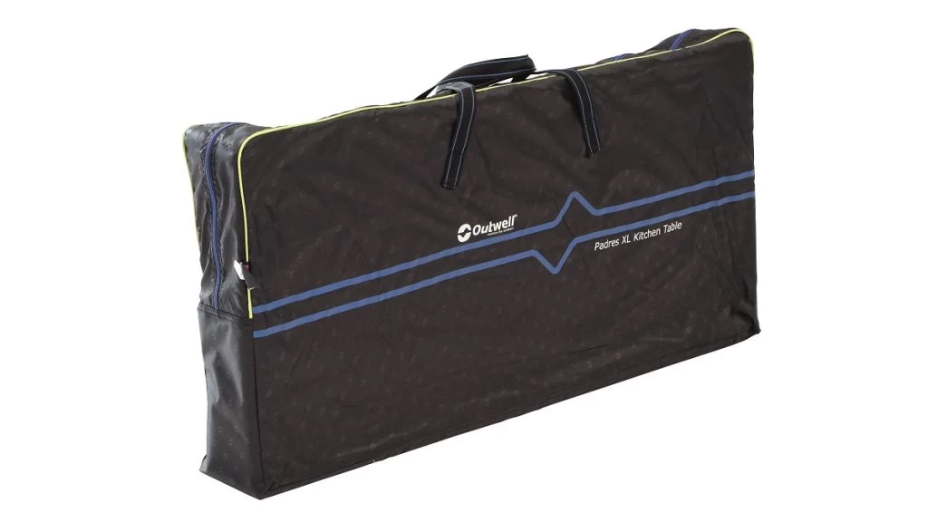 The kitchen table includes a ‘pull-out’ holder for a washing bowl or rubbish bag, and a windshield to protect burner flames.