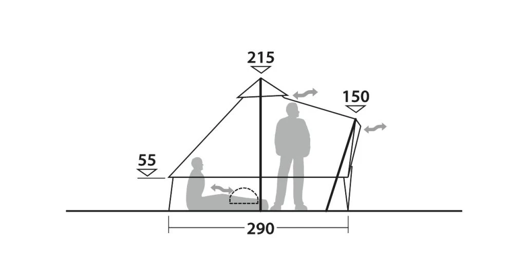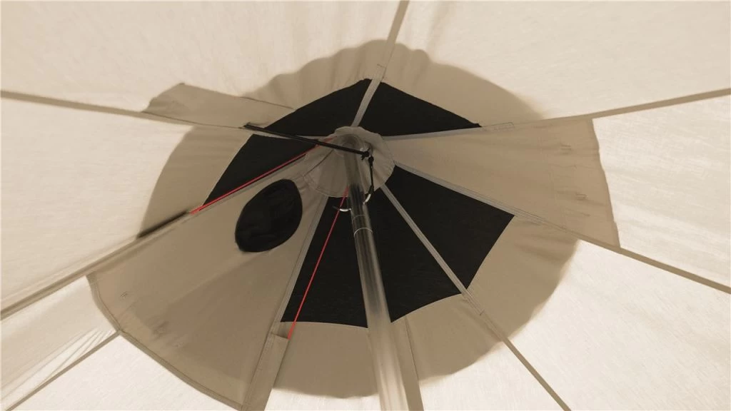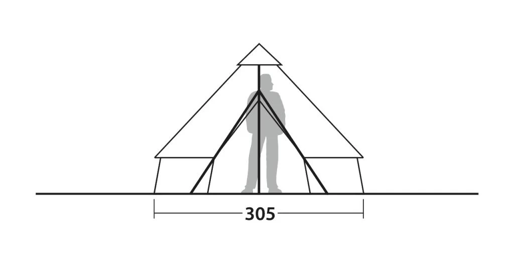 The vertical door makes for easy access – especially in bad weather − and the groundsheet features a zip to the centre alloy pole, enabling it to be rolled away at the door to create a safe area for an optional stove and a place for muddy boots.