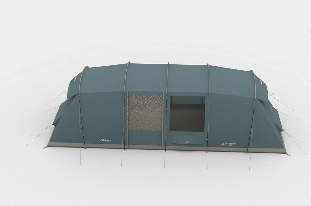 The Vango Castlewood 800XL is an 8-man Powerflex® Fibreglass poled tent with a vis-a-vis layout.