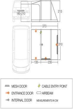 - Inflatable AirBeam® Structure – With 10 years of experience in AirBeam® technology, we are the leaders in pole-free pitching. AirBeam® technology ensures your awning is erect within a matter of minutes (supplied with AirBeam® pump)