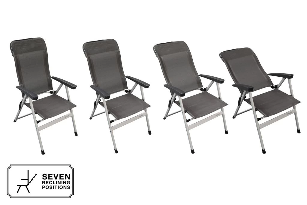The Vango Highbury Tall chair features a high back design for additional support and comfort and has an adjustable reclining frame with 7 seating positions and steel frame.