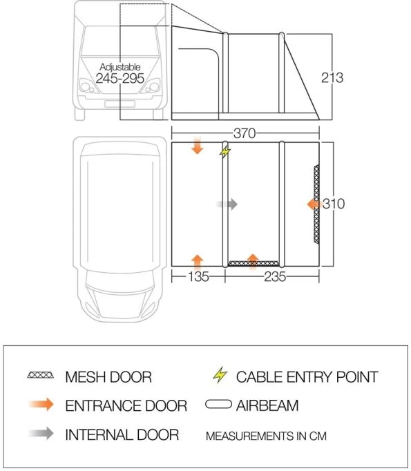 - Cable Entry Point – Neatly feed electrical cables into your awning allowing you to easily keep your camping appliances powered